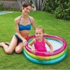 Небольшой детский надувной бассейн прекрасно подойдет для купания вашего малыша. Яркая расцветка бассейна непременно понравится как девочке, так и мальчику. Чтобы малыш проводил время в бассейне с удовольствием, можно добавить пару небольших надувных игрушек. Такой бассейн можно установить на лужайке перед домом, чтобы ребенок мог играть, купаться и быть под вашим наблюдением. Материал бассейна высококачественный винил. Бассейн предназначен для детей от 1 до 3 лет.