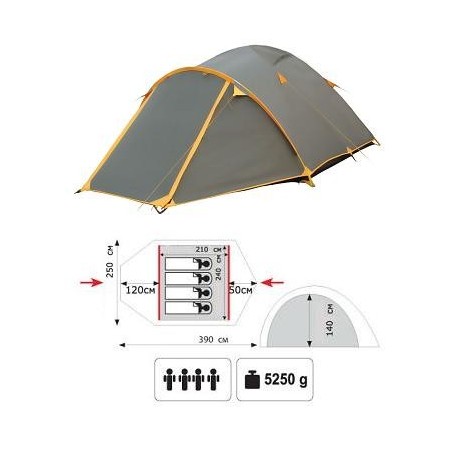 Тент: 100% полиэстер 75D/190T RipStop, водостойкость: 5000 мм в ст