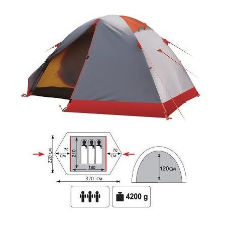 Тент: 100% полиэстер 75D/190T Diamond RipStop PU, водостойкость: 8000 мм в ст