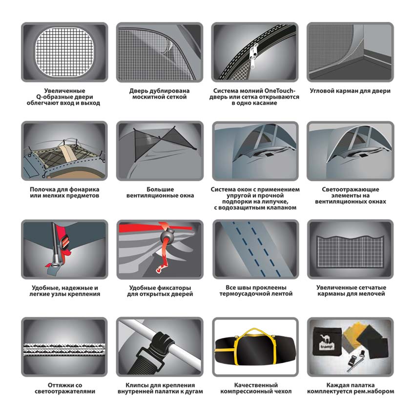 – Внешний тент имеет пропитку, задерживающую распространение огня