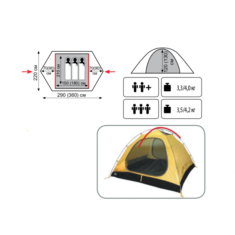 Внутренняя палатка: Дышащий полиэстер,