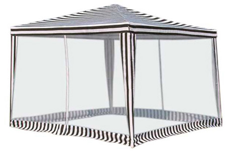 Тент-павильон многофункциональный для отдыха в летнее время на природе. Четыре стальные стойки-трубки высотой 2,5 метра образуют крышу. Такая конструкция позволяет укрыться от кратковременного дождя, солнца, насекомых, поставить стол. Модель оснащена возможностью закрепления боковых стенок сверху. Дополнительно для большей устойчивости имеются ветровые растяжки.