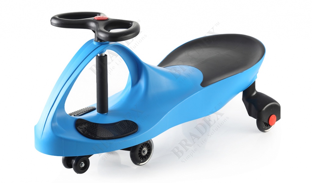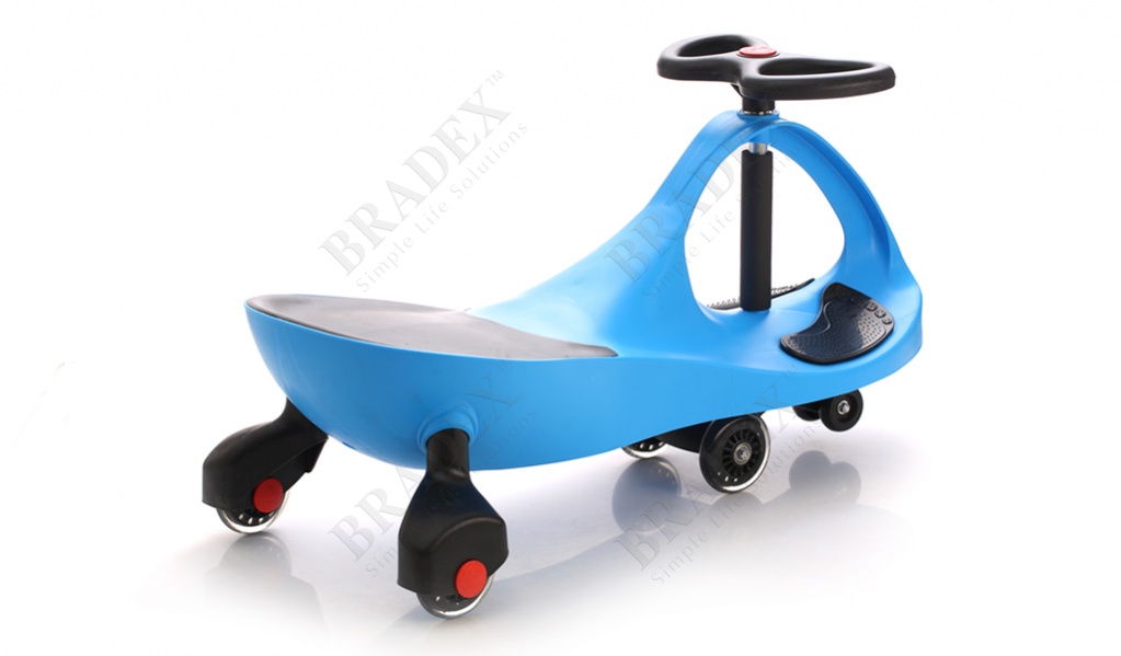 Уникальная чудо-машинка подарит Вашим детям множество часов удовольствия от вождения и игры. С самых маленьких лет Вы сможете занять Вашего малыша катанием на детской машинке «БИБИКАР». Это удивительное запатентованное изобретение не имеет аналогов. Детская машинка «Бибикар» станет идеальным источником не только развлечения, но и развития для любого ребёнка, которому уже исполнилось 3 года. Самостоятельно управляя «Бибикаром», обеспечивающим полную безопасность и комфорт, он быстрее научится ориентироваться в пространстве. “Бибикар” приводится в движение последовательным поворотом руля влево и вправо на 45-60 градусов, который двигает машинку вперед по принципу “скейтборда”. Если повернуть руль на 180 градусов и продолжать крутить – машинка будет ехать назад. «Бибикар» не нуждается в аккумуляторах и батарейках, может ездить по любой твёрдой и гладкой поверхности и разгоняться до 10 км/ч.