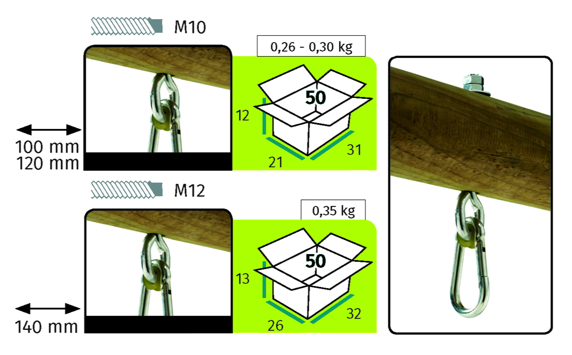 Сквозной подвес для качелей Тип О используется для крепления подвесных качелей. Поставляется с нейлоновым подшипником, обладающим более высокими характеристиками, чем PP втулки. Все подвесы KBT выполнены из очень толстой светлой оцинкованной стали согласно жестким требованиям. Крепеж подходит для крепления любых изделий. Допустимый максимальный вес на 1 крепеж – 70 кг.