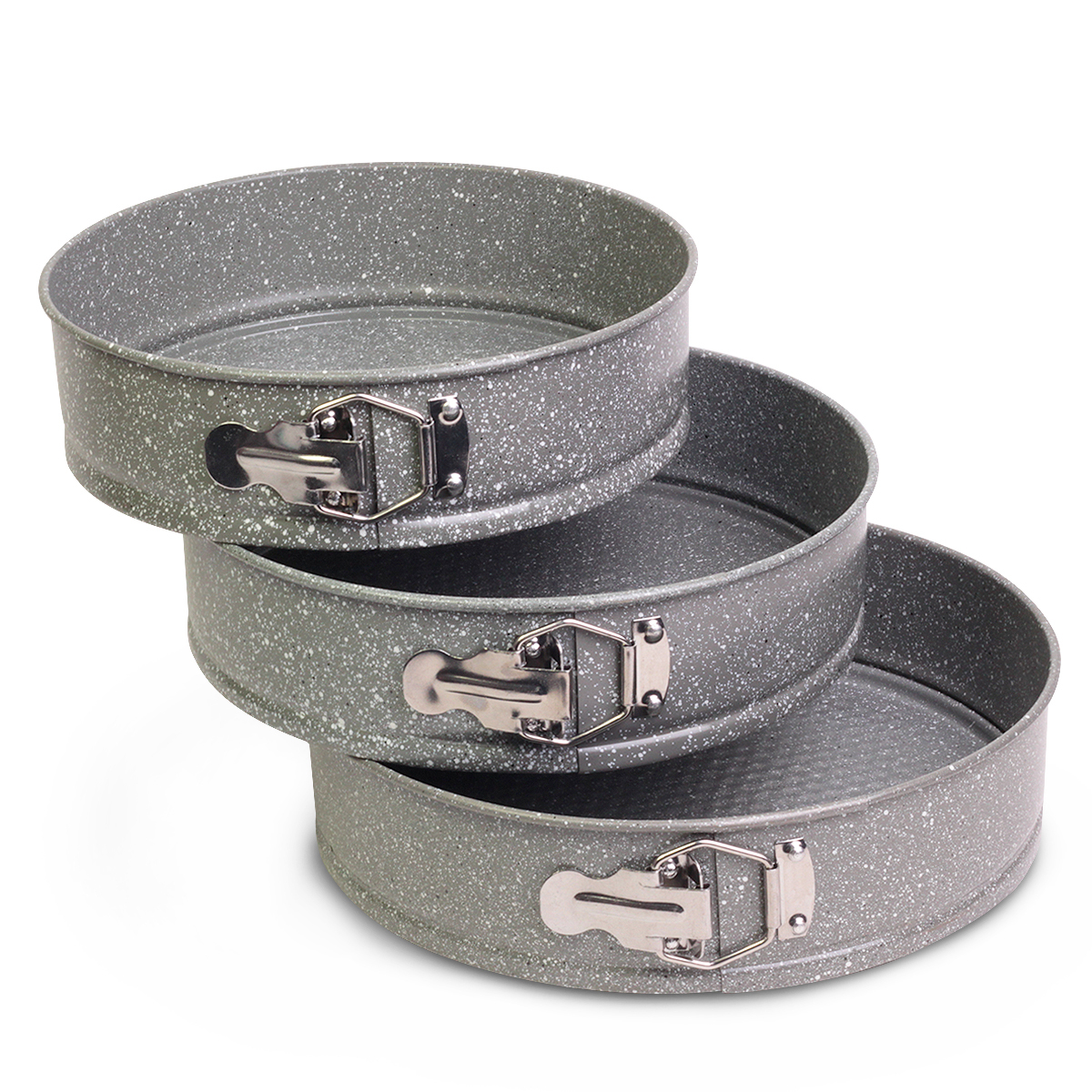 Разъемные формы для выпечки Kamille KM-6031 – очень удобны и практичны, прекрасно подходят для использования в домашних условиях, а так же просто незаменимы на профессиональной кухне. Формы выполнены из углеродистой стали с антипригарным покрытием, при этом каждая форма оснащена ободком с прочным разъемным механизмом, в котором плотно фиксируется съемное дно. В свою очередь, донышки форм с внутренней стороны имеют бугристую поверхность для еще большего улучшения антипригарных свойств. Из таких форм очень легко и просто извлекать готовое изделие. Также ободки форм, благодаря своему разъемному свойству, широко применяются как отдельные части при сборке различных муссовых тортов. Имея у себя на кухне такие формы, Вы всегда сможете удивить своих родных и близких красивым и изысканным десертом!