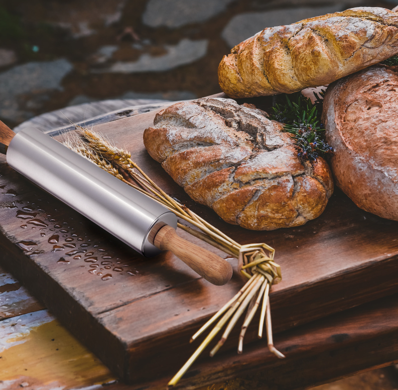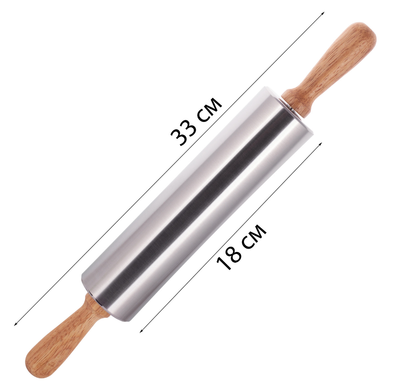 Скалка из нержавеющей стали Kamille KM-7819 с деревянными ручками и вращающимся валиком