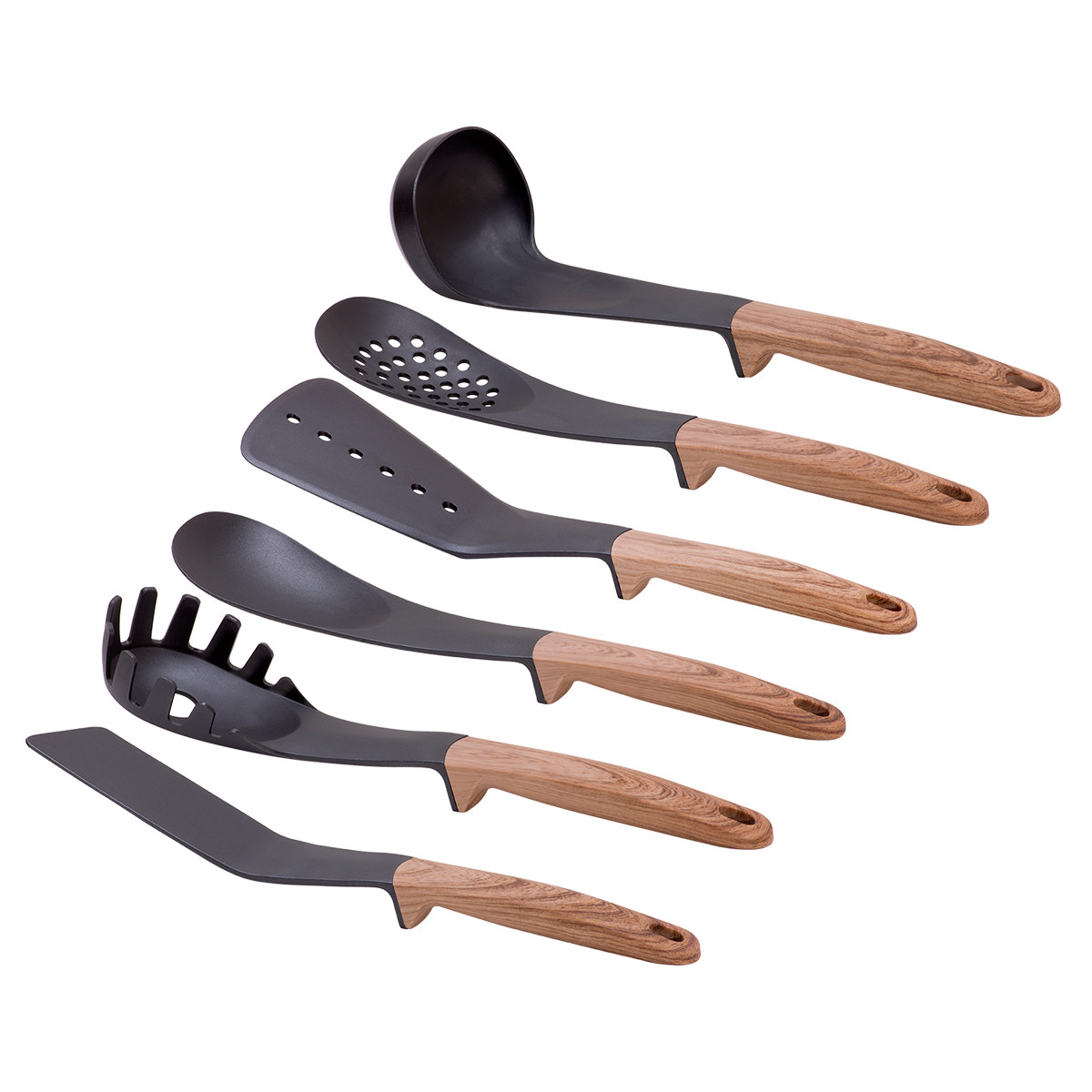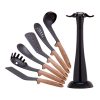 Набор кухонных принадлежностей с подставкой 7 шт, нейлоновые с ручкой под дерево.