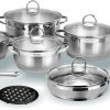 Описание Бренд – ViTESSE Артикул – VS-1043 Количество предметов, шт – 13 Комплектация:24 см Кастрюля с крышкой – 5,1 л 20 см Кастрюля с крышкой – 2,95 л 18 см Кастрюля с крышкой – 2,1 л 16 см Кастрюля с крышкой – 1,5 л 16 см Сотейник с крышкой – 1,5 л Сковорода с крышкой Диаметр / Объем – 24 см/2,45 л Бакелитовая подставка – 1 шт Материал корпуса – Высококачественная нержавеющая сталь 18/10 Полировка – Матовая и зеркальная Дно – Многослойное термоаккумулирующее Ручки – Из нержавеющей стали 18/10 Способ крепления ручек – На клепках Крышки – Из термостойкого стекла Можно мыть в посудомоечной машине – да Габаритные размеры, см – 50,00 х 28,00 х 24,00 Нагревгазовые конфорки стеклокерамические конфорки чугунные конфорки галогеновые конфорки