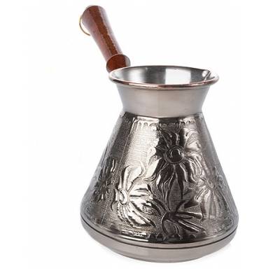 Самая популярная турка для кофе из меди, потому что медь имеет равномерную теплопроводность и кофе не пригорает к стенкам турки. Качественная турка имеет широкое дно и узкое горлышко, внутреннее покрытие должно быть из пищевого олова. Достоинством меди является то, что она равномерно распределяет тепло, тем самым улучшая процесс приготовления кофе. Благодаря узкому горлышку, весь аромат кофе остается внутри.