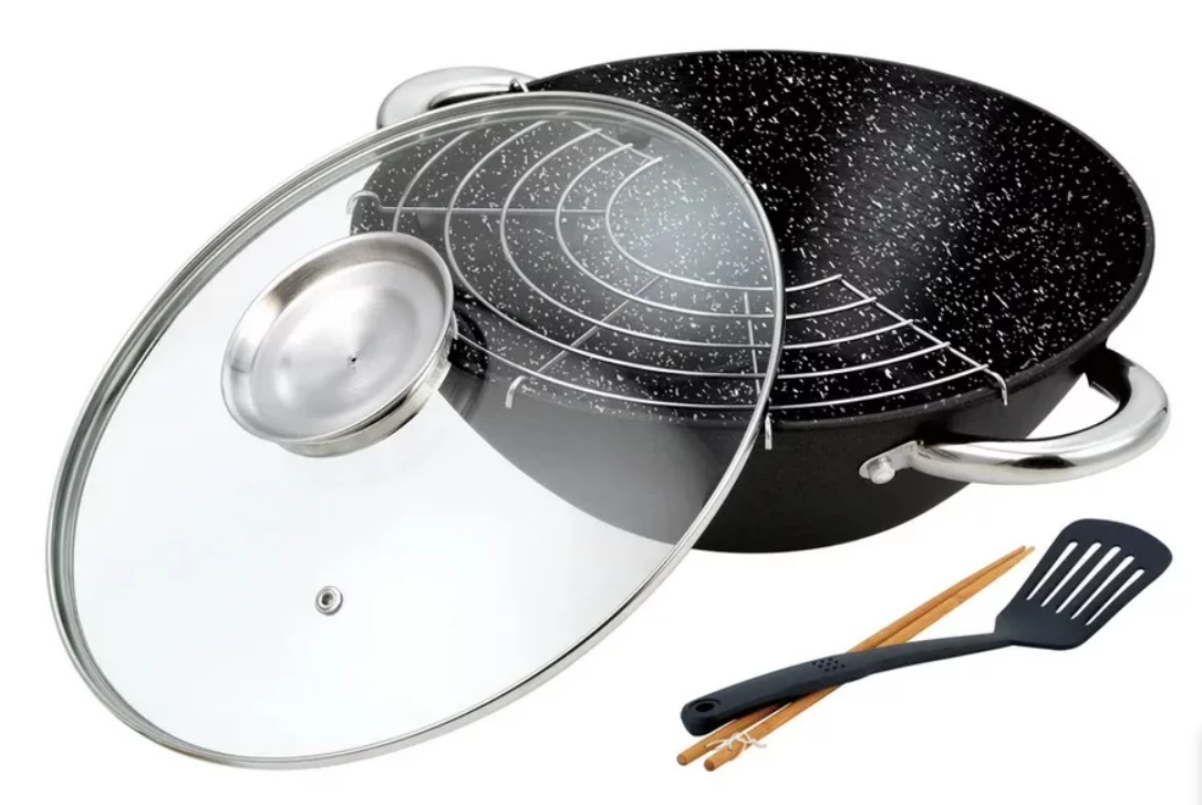 Ручки выполнены из нержавеющей стали. Сковорода имеет антипригарное мраморное покрытие Xylan 2.