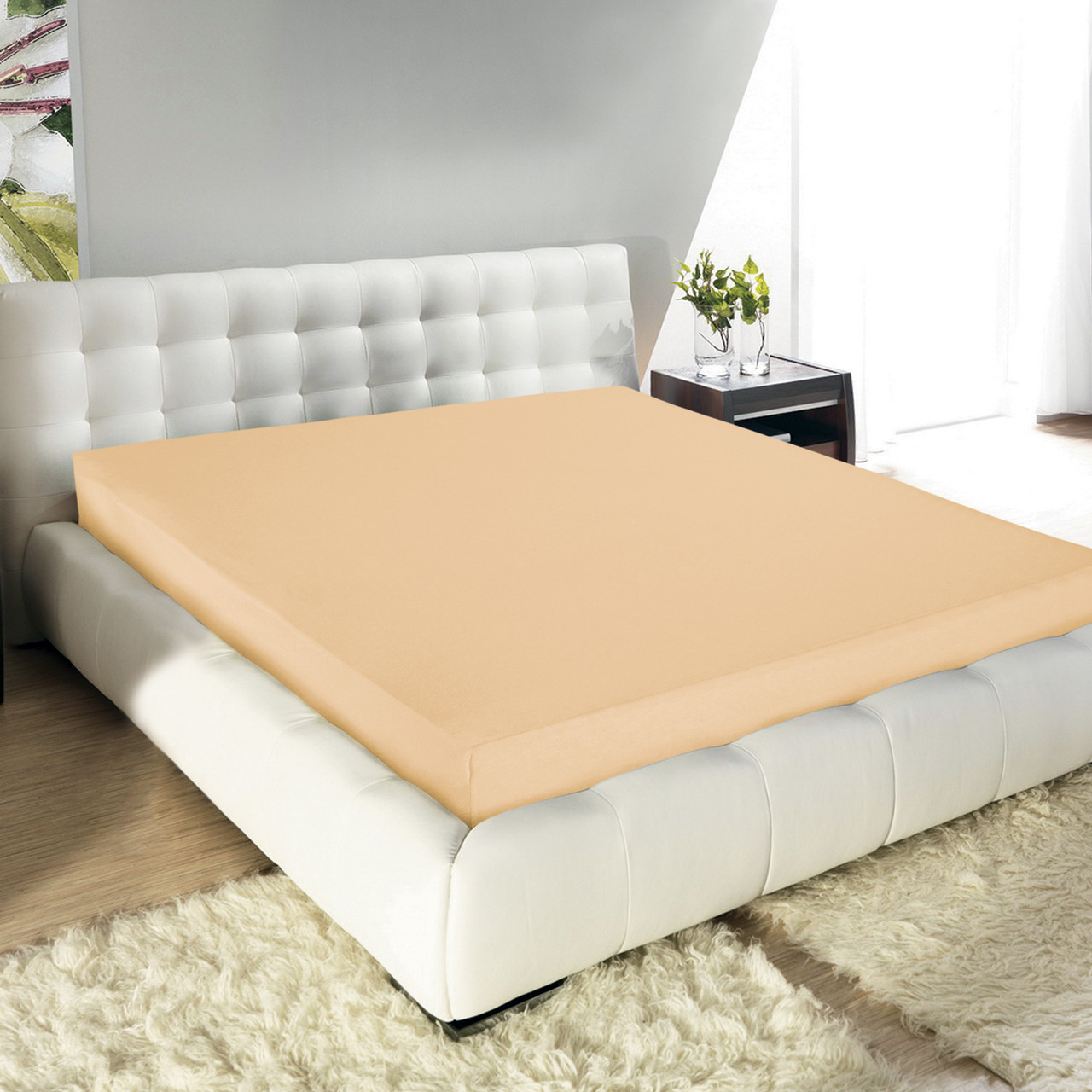 Проcтыня на резинке трикотажная Беж 160х200х20см Guten Morgen ПТбеж-160-200/125